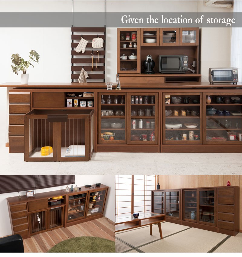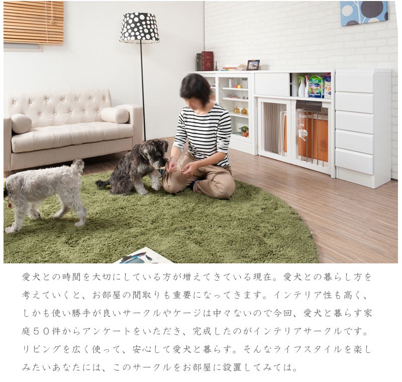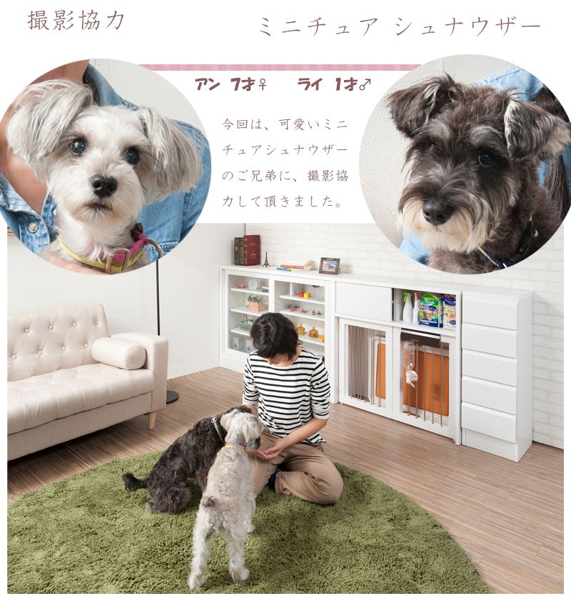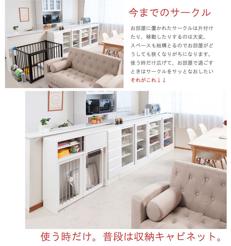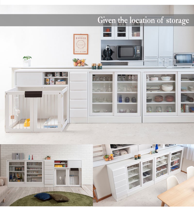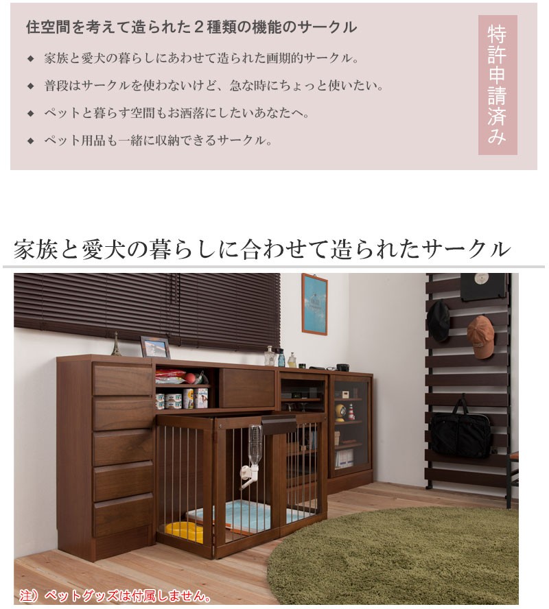 収納も付いたドッグサークルは 愛犬をサークルに入れるときだけ広げるので 普段は収納キャビネットのように使えるのが魅力