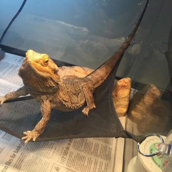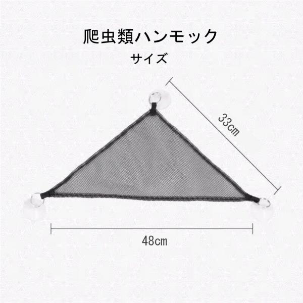 三角形で作られた爬虫類用ハンモックは吸盤で固定、