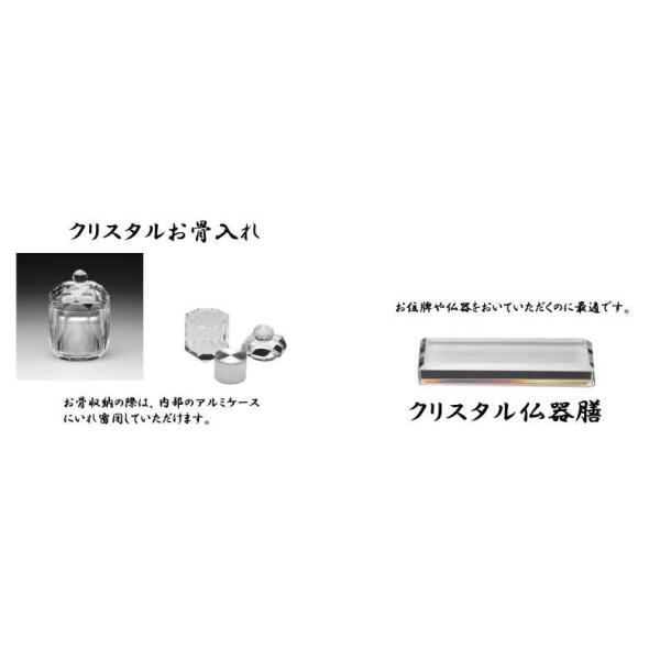 不純物を含まない、最高品質のクリスタルガラスを使用しました、メモリアル仏具(位牌・具足・仏器膳・お骨入れ)のセット販売です。近年のお部屋の様式にとてもよく合い、場所を取らないこちらのお位牌は、夫婦位牌や水子供養・愛玩(ペット)供養などの手元供養にとても人気の高いお位牌です。