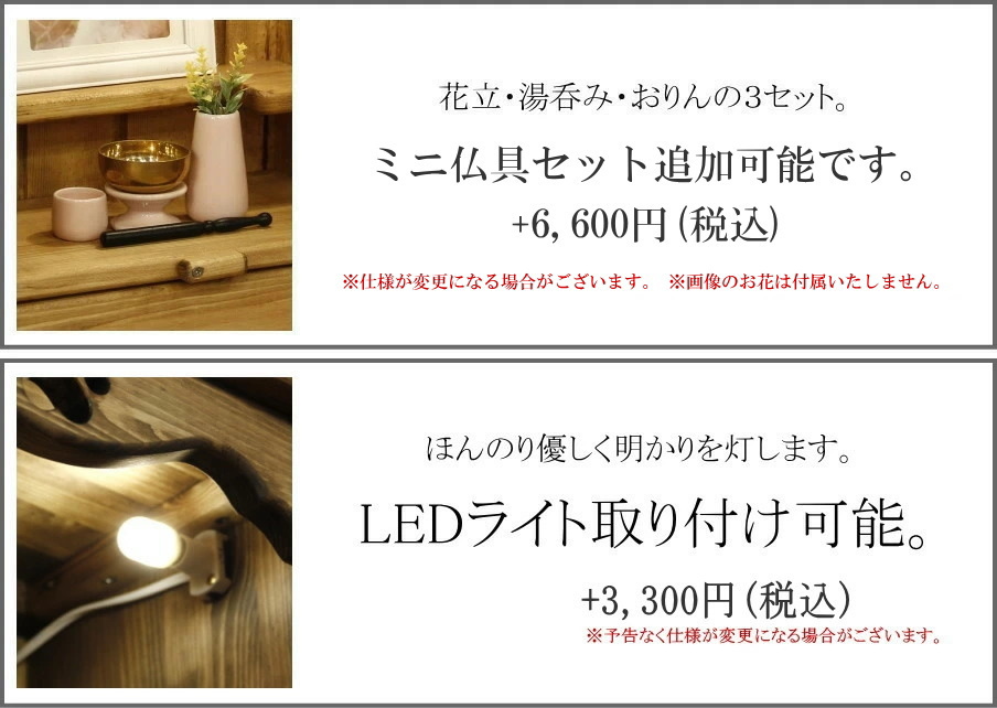 電灯と仏具セットは別途オプションとして追加可能です。
