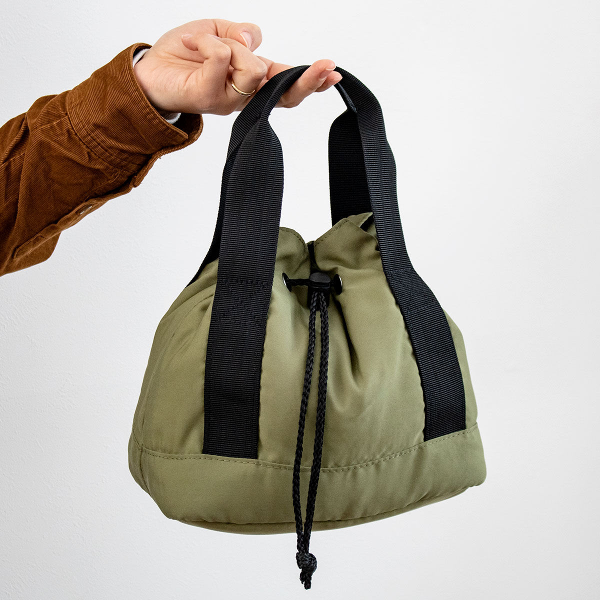 ●ひもをきゅっと絞って巾着にもなる2WAY仕様です。