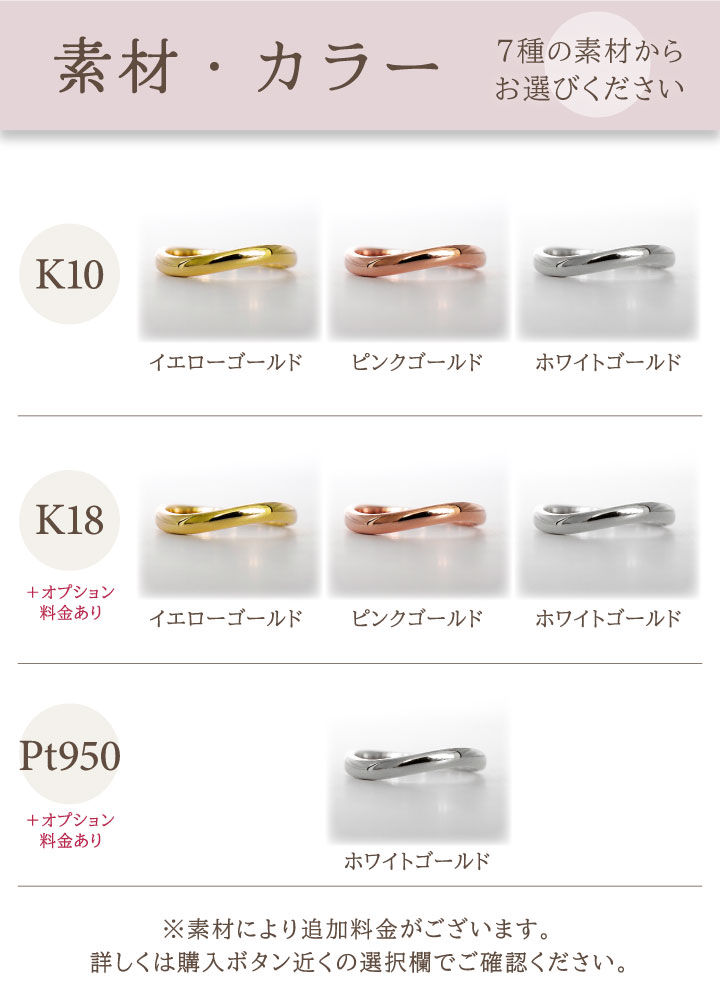 プラチナ950はホワイトゴールドカラーのみ。ルテニウム(低アレルギー性金属)を2%配合し硬度を高めたプラチナ金属です。