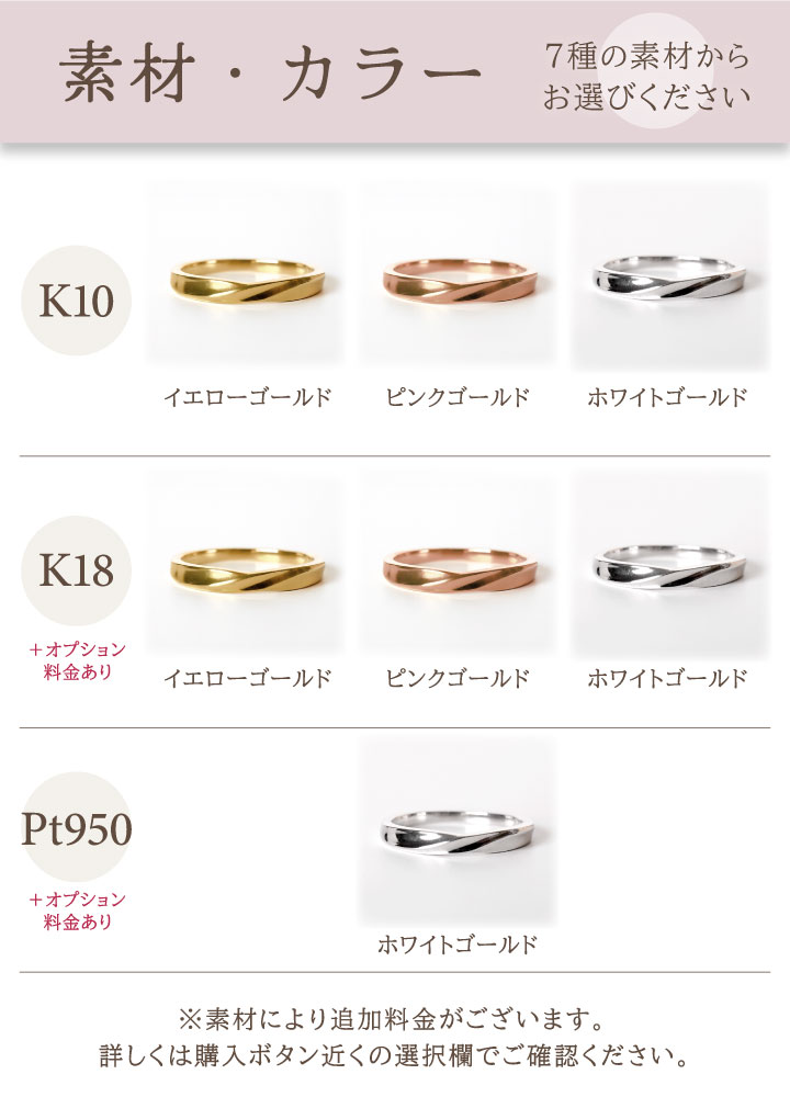プラチナ950はホワイトゴールドカラーのみ。ルテニウム(低アレルギー性金属)を2%配合し硬度を高めたプラチナ金属です。