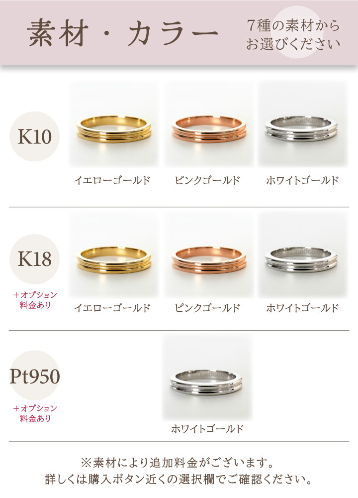 プラチナ950はホワイトゴールドカラーのみ。ルテニウム(低アレルギー性金属)を2%配合し硬度を高めたプラチナ金属です。