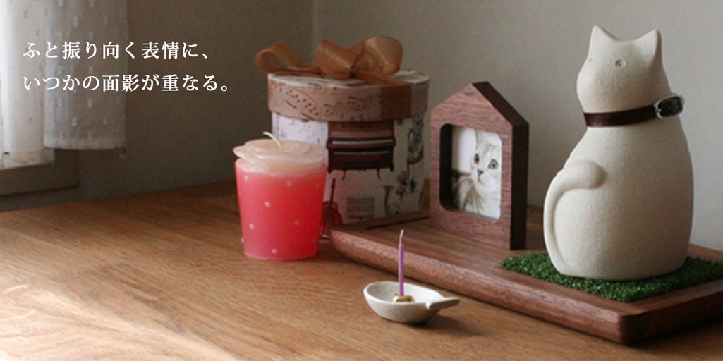 耳を耳をピンと立てて見つめる瞳は、まるであの頃のよう。陶器の手ざわりにぬくもりを感じて、あの子がそばにいるような、やさしい気持ちに。