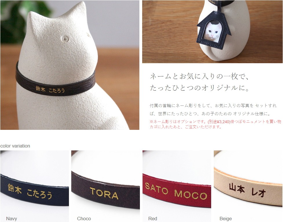 いつも着けていた首輪。お気に入りだったオモチャの色。 イメージに近いデザインとカラーを選べば、 もっと想いにフィットします。