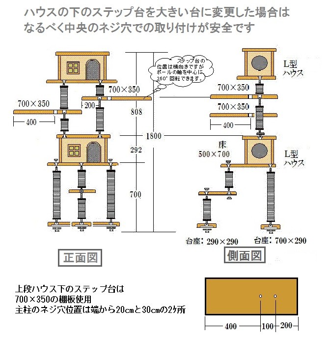 上段ハウスの下のステップ台を大きい板への変更が出来ます。