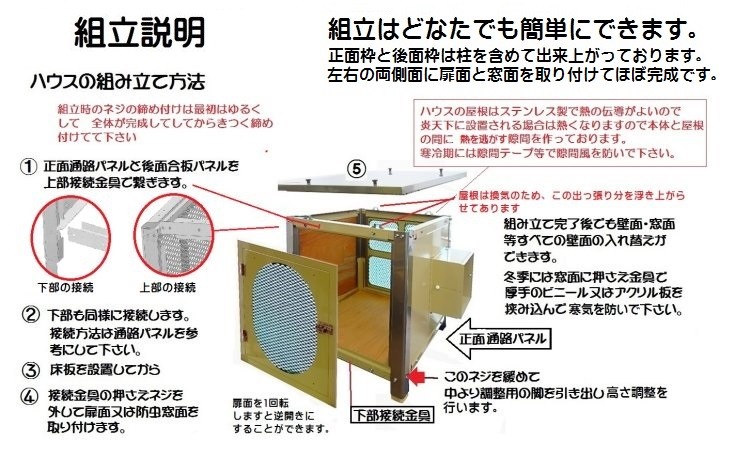 冬期は透明アクリル窓に入れ替えますと寒気の遮断ができ中の様子が見られます。