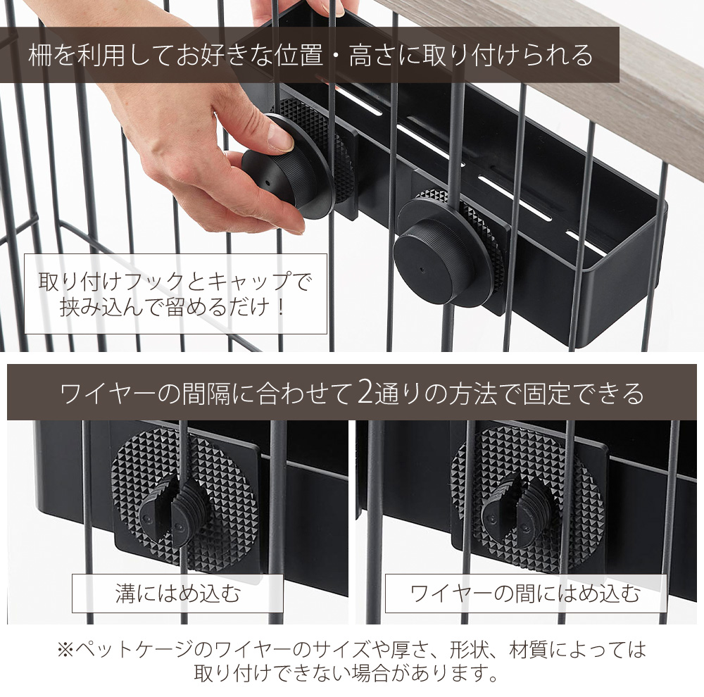※ペットケージのワイヤーのサイズや厚さ、形状、材質によっては取り付けできない場合があります。